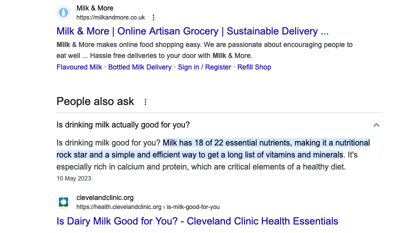Actually Googling “milk” (at least in the UK) brings back uniformly positive results (see the screenshot below).
