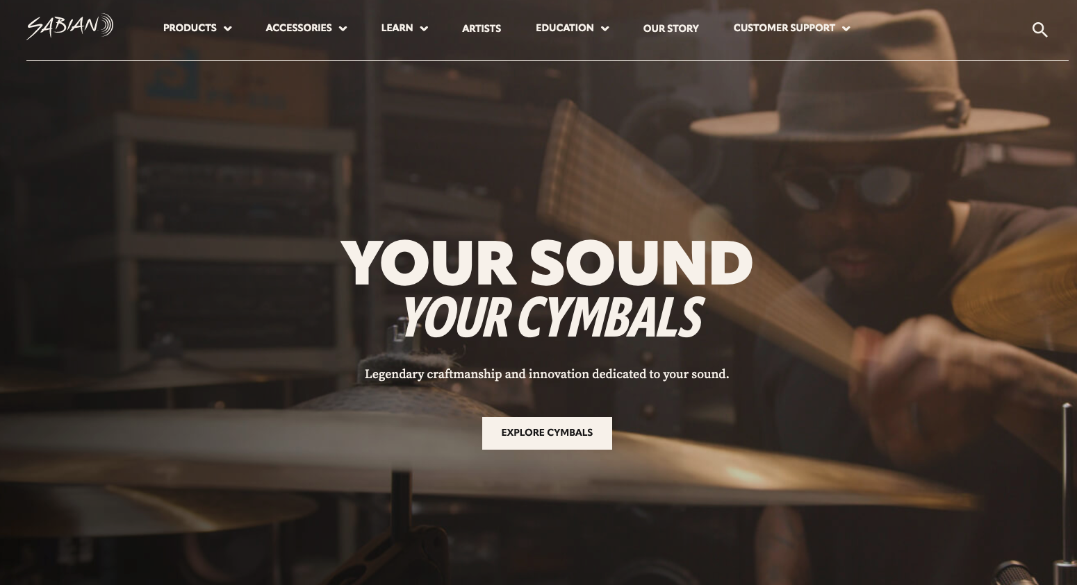 Sabian, one of two Turkish manufacturers (along with Zildjian) that kickstarted modern cymbal design, leans on themes of craftsmanship and innovation tailored to the player in its positioning.